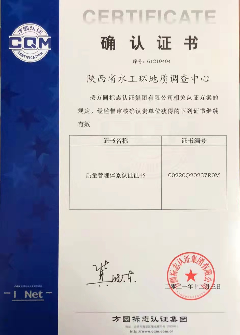 審核過程中,立足中心質量管理體系文件,審核組通過談話、資料查閱、現場取證(陜西省安康地區土地質量調查評價及綜合研究項目、陜西省渭北巖溶水資源環境調查評價項目、活動斷裂及強震對西安城市地下空間開發和影響及防控對策研究項目)等手段,對中心質量管理體系運行情況進行了全面細致的檢查。